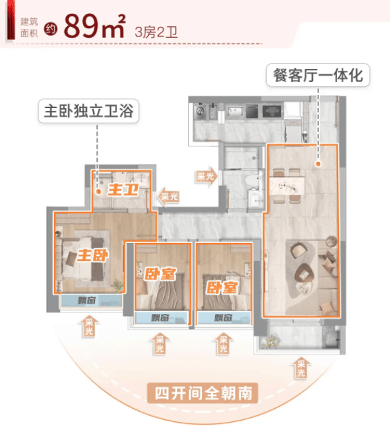 跟着家庭生齿的添加和糊口质量的提拔,人们对栖身空间的需求也正在不竭升级。新世界天馥灵敏地捕获到了这一变化,推出了89㎡三房两卫和98㎡四房两卫两款进阶户型,满脚了改善型客户的需求。89㎡三房两卫户型,采用了典范的三开间朝南设想,了次要糊口空间的采光和通风。三个房间均带有飘窗,不只扩大了视觉结果,还添加了适用面积。从卧配备了卫生间,提拔了栖身的私密性和舒服度。U型厨房设想合理,收纳空间充脚,满脚了烹调快乐喜爱者的需求。客堂取阳台相连,构成了一个宽敞的休闲区域,适百口人、孩子玩耍。这款户型总价约347万元起,性价比极高,是三口之家或二胎家庭的抱负选择。